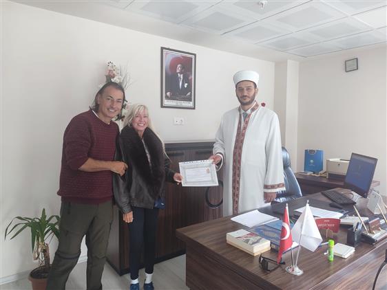İlçe Müftüsü Mehmet Zahid Demir, Kimberly’a İslam dininin inanç, ibadet ve ahlak esaslarına dair temel dini bilgiler verdi.