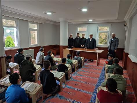 İlçe Müftüsü Mehmet Emin Albayrak ile İlçe Vaizi Ahmet Fatih Karaağaç, Çayırlı Kur’an Kursu ve Hurmalık Kur’an Kursu’nu ziyaret ederek hafızlık sınavına hazırlanan öğrencileri dinleyip sınav öncesi değerlendirmelerde bulundular.
