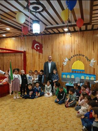 İlçe Müftümüz Mehmet Emin Albayrak, 4-6 Yaş Kur’an Kursumuzda düzenlenen Gazze/Filistin temalı etkinliğe katıldı.