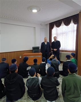 İlçe Müftü Mehmet Emin Albayrak ve İlçe Vaizi Ahmet Fatih Karaağaç, Merkez Kur'an Kursunu ziyaret edip hafızlık eğitimine devam eden öğrencilerin son durumları ile ilgili değerlendirmelerde bulundular.