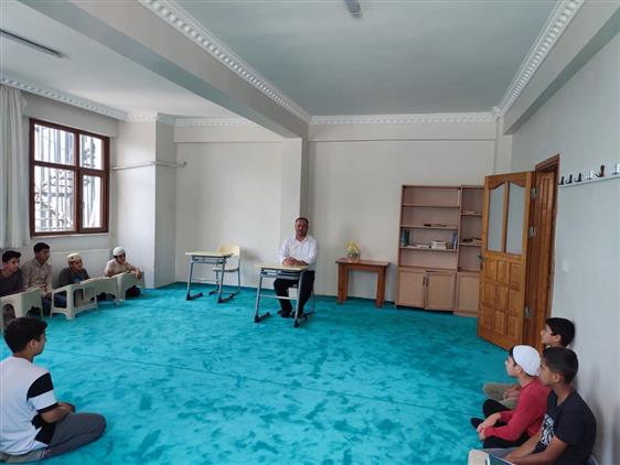 İlçe Müftüsü Mehmet Emin Albayrak ve İlçe Vaizi Ahmet Fatih Karaağaç, Tatlısu Kur'an Kursunu ziyaret edip hafızlık eğitimine devam eden öğrencilerin son durumları ile ilgili değerlendirmelerde bulundular.