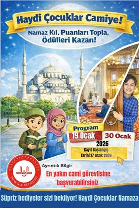 Yarıyıl tatilini verimli geçirmek, çocukların camiyle bağlarını güçlendirmek ve manevi değerlerle buluşmalarını sağlamak amacıyla “Haydi Çocuklar Camiye” etkinliği planlandı. Etkinlik kapsamında çocukların camide bir araya gelerek hem ibadet ortamını tanıyıp hem de çeşitli sosyal ve eğitici faaliyetlere katılması hedeflenmektedir.