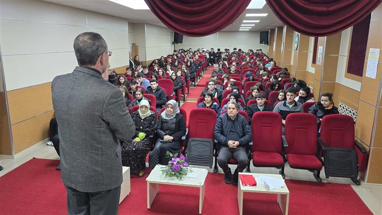 Programda gençlere seslenen İlçe Müftüsü Murtaza GÜR "İmtihan dünyasında bunalan insan için hayatı anlamlı kılacak yegâne kurtuluş, özüne dönmesi, hakikati araması ve maneviyatını canlı tutmasıdır. Unutmayalım ki yorulan gönüller, imanla ve muhabbetle tazelenir. Aşınan değerler vicdanla onarılır. Savrulan hayatlar, manevi destek ve rehberlikle istikrara kavuşur" dedi.