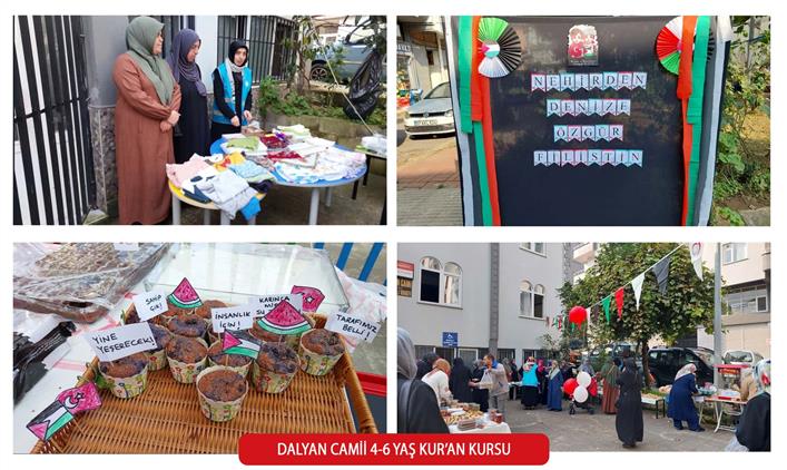 Şu ana kadar Çaykur Ziraat Merve 4-6 Yaş Kur’an Kursu, Dalyan Camii 4-6 Yaş Kur’an Kursu, 15 Temmuz Şehitler 4-6 Yaş Kur’an Kursu, Atmeydanı Mahallesi Ortalan Camii 4-6 Yaş Kur’an Kursu ve Müftü Mahallesi Berat Camii bahçelerinde düzenlenen hayır çarşıları, vatandaşların yoğun ilgisiyle gerçekleşti. Etkinliklerde hem Filistin için dayanışma mesajları verilirken hem de çocukların ve ailelerin duyarlılık kazanmasına yönelik çeşitli faaliyetler yapıldı.