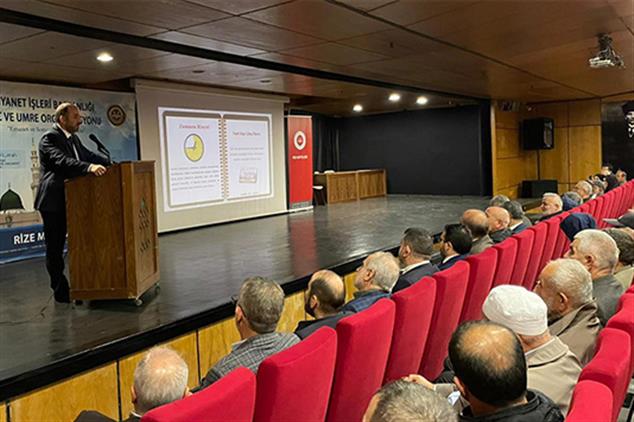 Diyanet İşleri Başkanlığı 2025-2026 Umre Organizasyonuyla umre ibadetini yerine getirmek üzere kutsal topraklara gidecek vatandaşlarımız için “Umre Bilgilendirme ve Eğitim Semineri” düzenlendi.